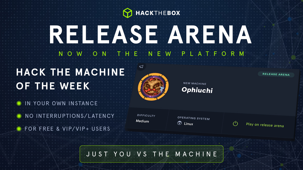 Hack The Box On Twitter Release Arena Is Live On The New Htb Platform Just You Vs The Machine No Excuses Hack The Machine Of The Week In Your Own